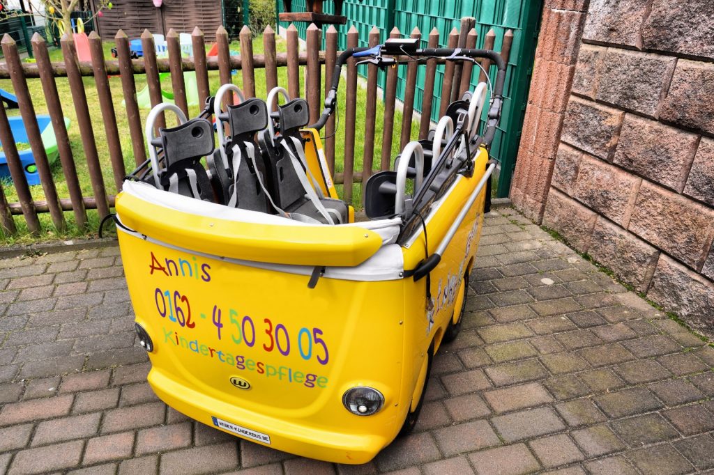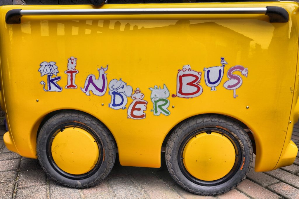 Das ist unser Kinderbus. Mit dem Kinderbus unternehmen wir viele Ausflüge in die Haard und Umgebung.